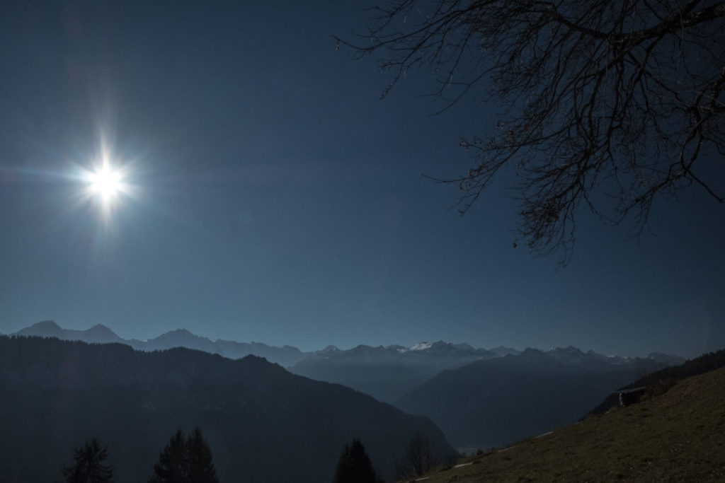 Mit tollen Wetterprognosen auf dem Smartphone geht es Richtung Berner Oberland, genauer gesagt bis zur Postauto-Endstation „Habkern, Zäundli“. Ich vermisse die frische Bergluft, und die Aussicht auf die verschneiten Gipfel.