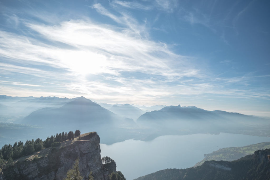 Das Niederhorn (1963m) kenne ich ja vom letztjährigen Nacht-, ääh, Schneesturmschlitteln mit Fondue-Essen. Tagsüber bietet dieser Ausflugsort oberhalb vom Beatenberg perfekte Aussicht auf die ganze Berner Alpenkette – ein wahrer Traum, wenn die Sicht perfekt ist. Auch das Gipfelrestaurant ist sehr gemütlich und lädt zum Verweilen ein.
