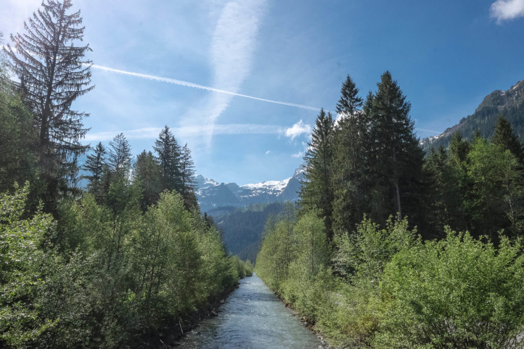 Die schöne Zugfahrt von Zweisimmen nach Lenk führt durch das breite Simmental. Die (noch) weissen Bergen, der wolkenlose blaue Himmel und das kräftige Grün der Vegetation im Tal…ja, der Frühsommer begrüsst uns in seiner vollen Pracht! Der einstündige, flache Spaziergang vom Bahnhof Lenk entlang der milchigen Simme führt zum Startpunkt des Aufstiegs. Wer aber auf dieses Aufwärmen verzichten will, kann auch einfach mit dem Ortsbus bis „Simmenfälle“ fahren.