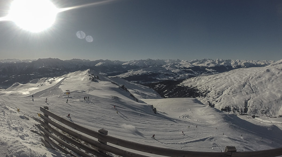 Sei es von der Aussichtsplattform auf Crap Sogn Gion, vom höchsten Punkt des Skigebiets beim Vorab Gletscher oder einfach bei einer Abfahrt durch den frischen Pulverschnee: Ich habe es mehrmals bereut, meine richtige Fotokamera nicht dabei zu haben.